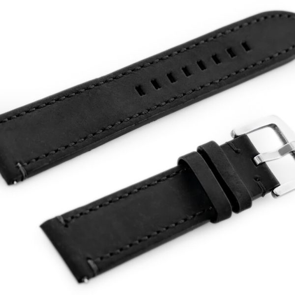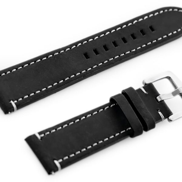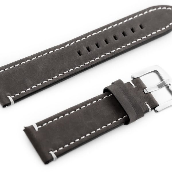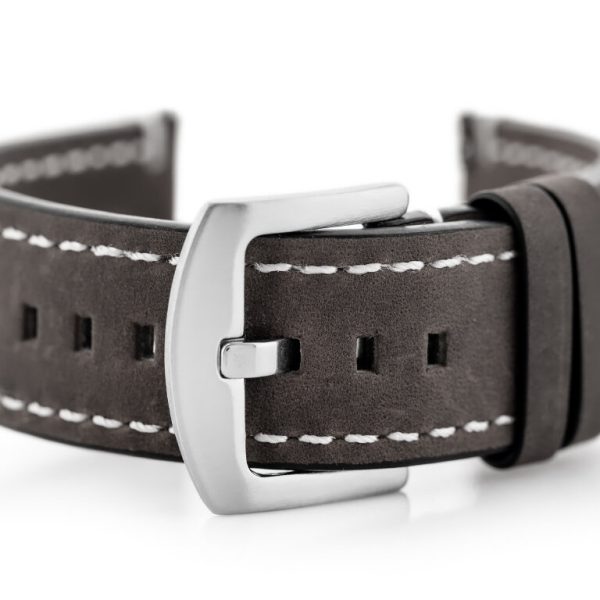OPIS: Pasek ze skóry naturalnej w kolorze brązowo-czarnym z czarnymi przeszyciami. Klamerka metalowa w kolorze srebrnym. WYMIARY szerokość przy mocowaniu: