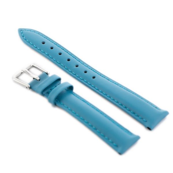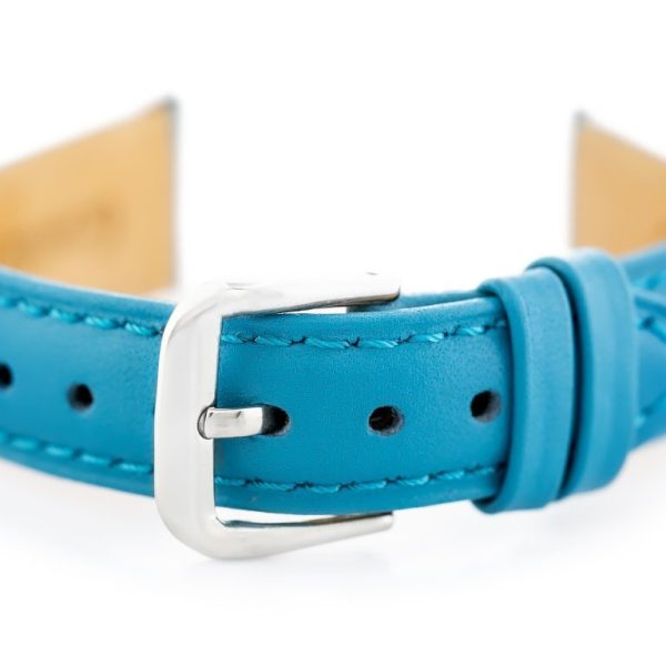 OPIS: Pasek ze skóry naturalnej w kolorze jasnoniebieskim z jasnoniebieskimi przeszyciami. Klamerka metalowa w kolorze srebrnym. WYMIARY szerokość przy mocowaniu: