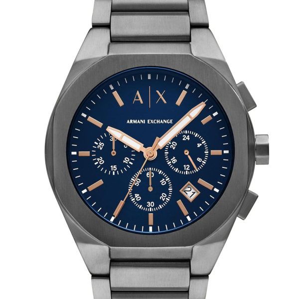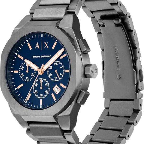 Zegarek męski Armani Exchange Drexler Chronograph AX2612 to model, który łączy nowoczesny wygląd z funkcjonalnością. Jego elegancka granatowa tarcza, chroniona