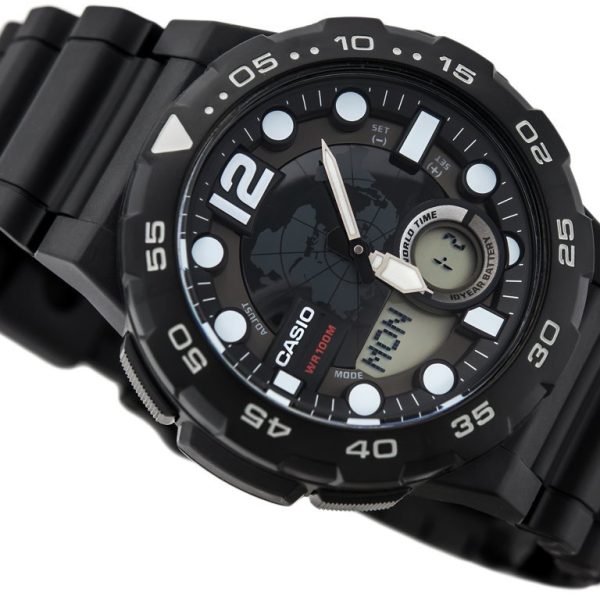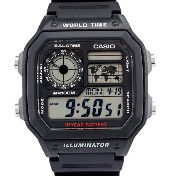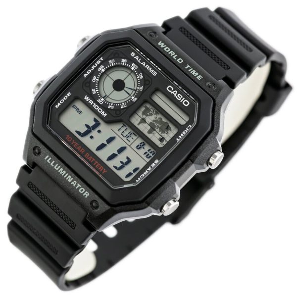 OPIS: Zegarek Casio AE-1200WHD-1A to model z serii „Casio World Time”, który charakteryzuje się solidną konstrukcją oraz funkcjonalnością. Wyposażony jest
