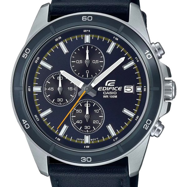 OPIS: Zegarek Casio Edifice EFR-526D-2AV to dynamiczny czasomierz o sportowym charakterze, wyposażony w precyzyjny chronograf. Dzięki wodoszczelności do 100m, zegarek