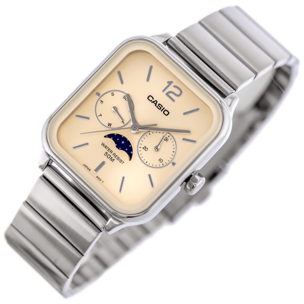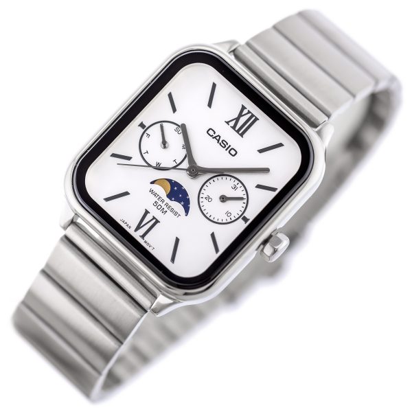 OPIS: Zegarek Casio MTP-V001D-7BUDF to elegancki i funkcjonalny wybór dla mężczyzn, którzy poszukują niezawodnego czasomierza łączącego klasyczny design z nowoczesną precyzją.
